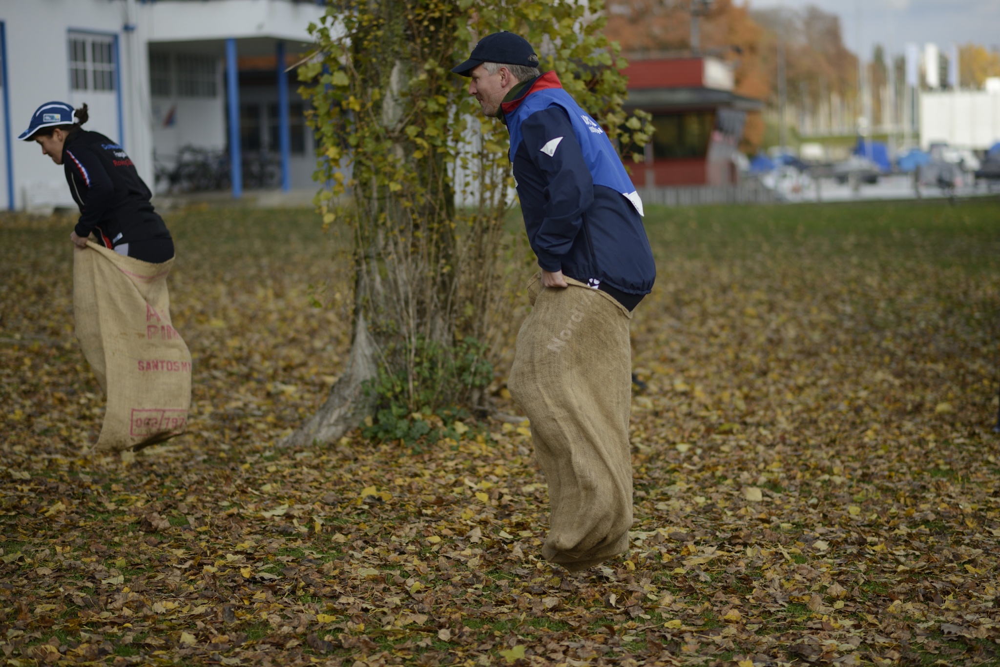 Säckhoppning, dom fyra presidenterna dricker glögg efter halva banan.