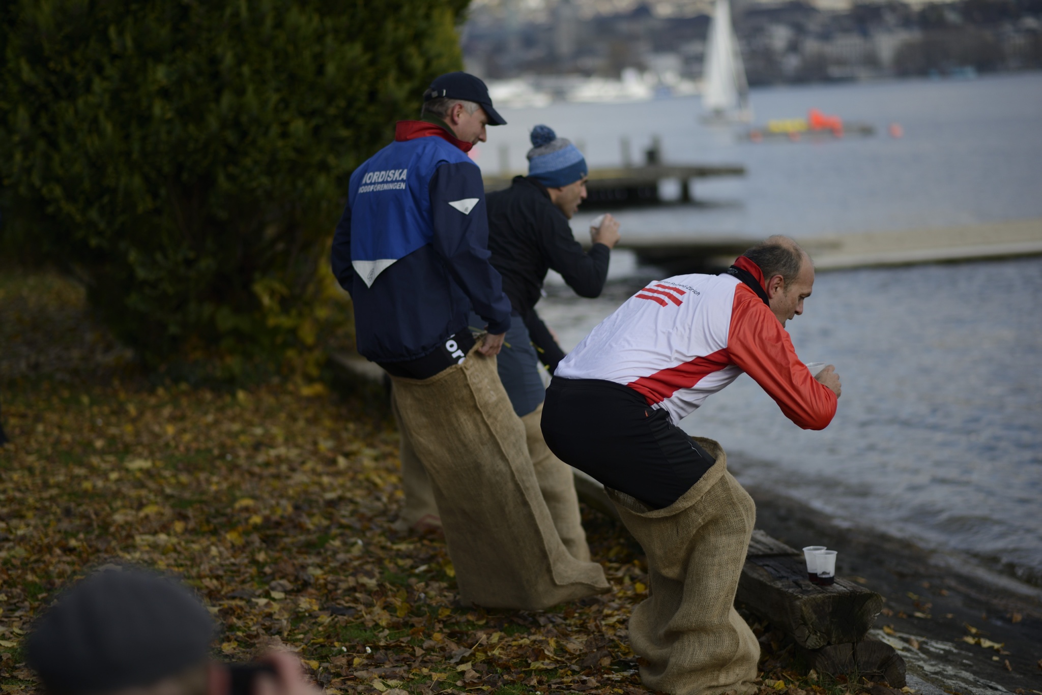 Säckhoppning, dom fyra presidenterna dricker glögg efter halva banan.
