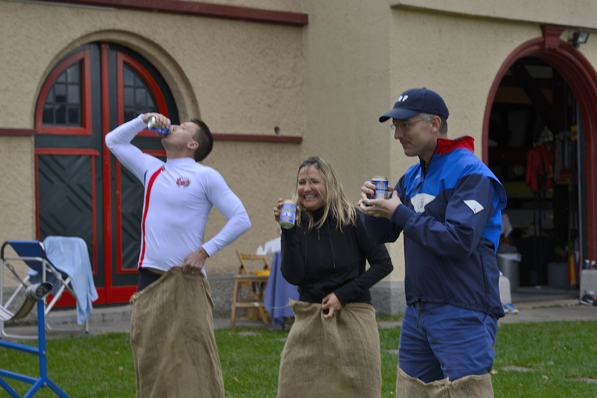 Säckhoppning är jobbigt så en liten vätskepaus passar alltid bra.
